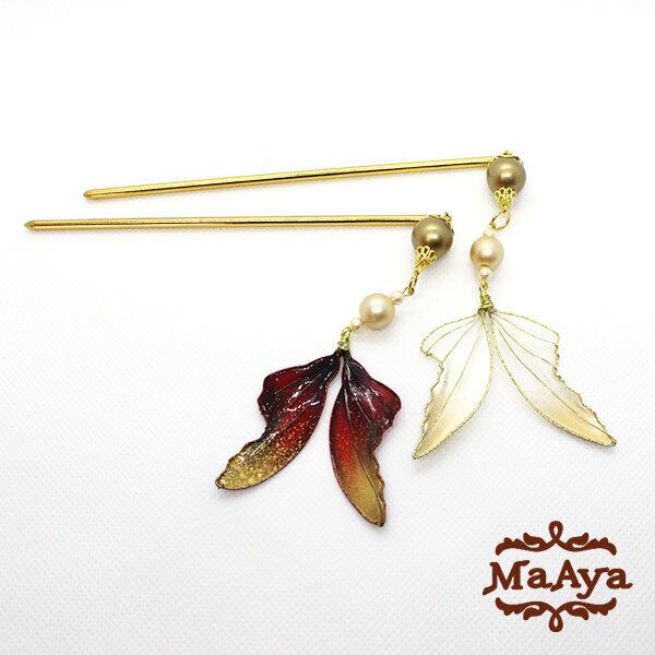 【再販】金魚尾のかんざし(白)(一本挿し・ディップアート)