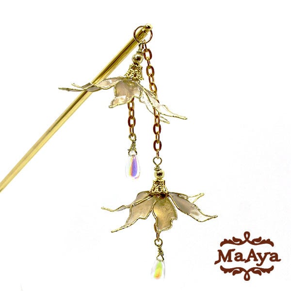 しずく彼岸花のかんざし(白・一本挿し・ディップアート)【MA-83】