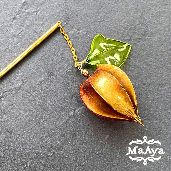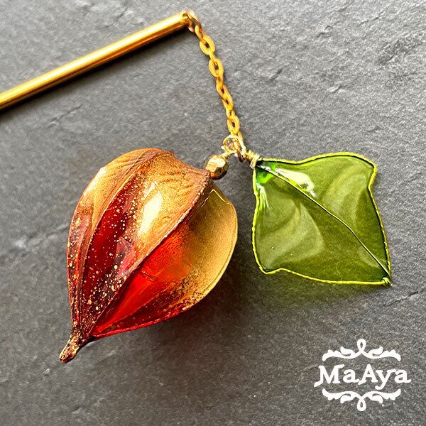こがね鬼灯のかんざし(枝垂れ・一本挿し・ディップアート)【MA-65】