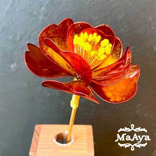 金衣・赤椿のかんざし(一本挿し・ディップアート)【MA-192】