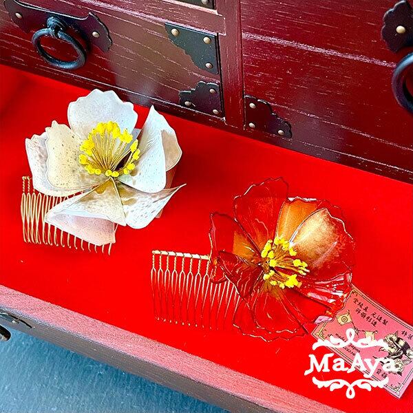 ▼白色のヘアコームはこちら:金衣・白椿の髪飾り(ヘアコーム・ディップアート)