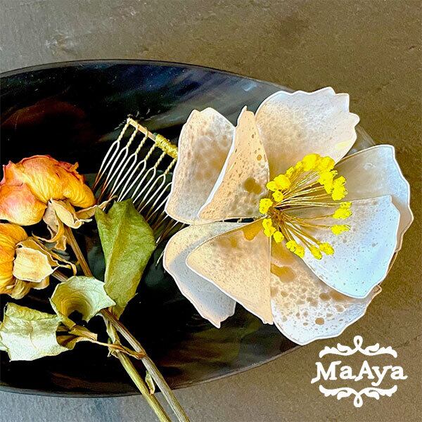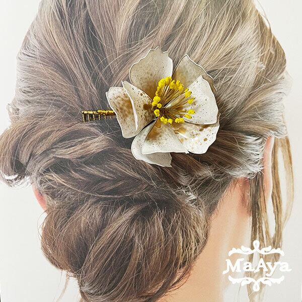 金衣・白椿の髪飾り(ヘアコーム・ディップアート)【MA-195】