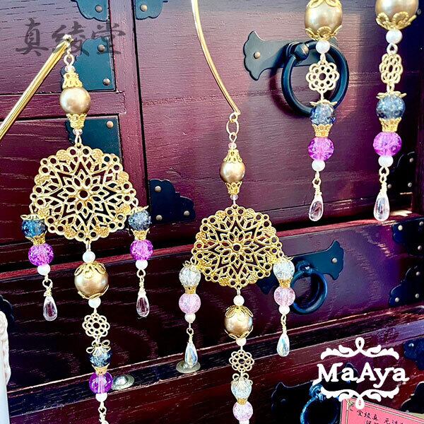 お揃いの簪、カラー違いのイヤーフックもあります。