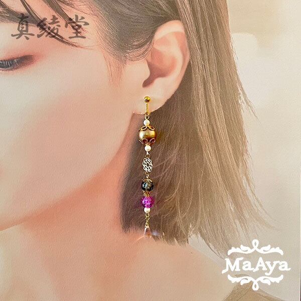 ▼アジアンゴシックロングイヤーフック(白×桃)