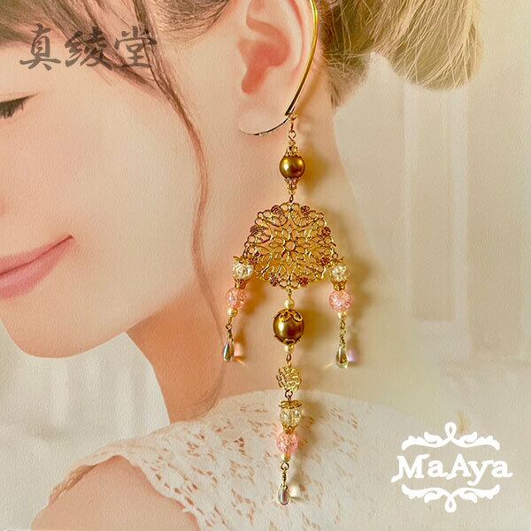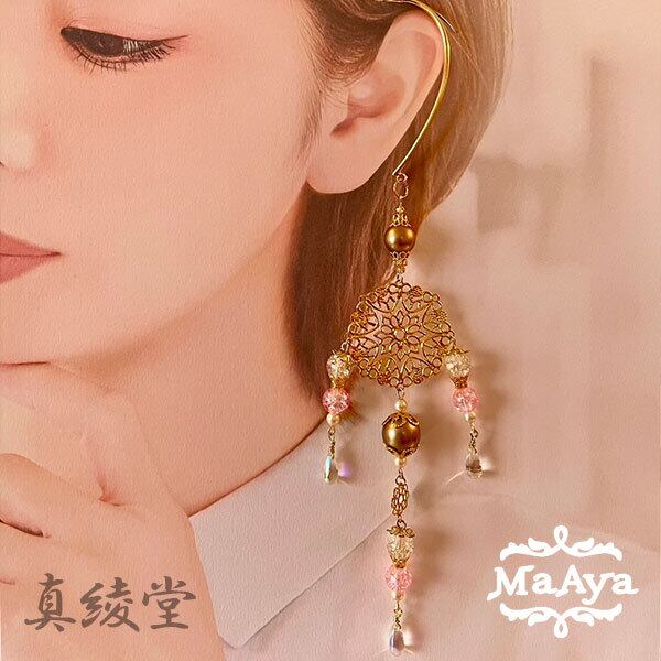 アジアンゴシックロングイヤーフック(白×桃)【MA-331】BASE店